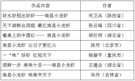二、南縣小龍蝦廣告語(yǔ)入圍作品: