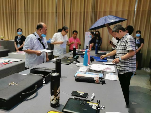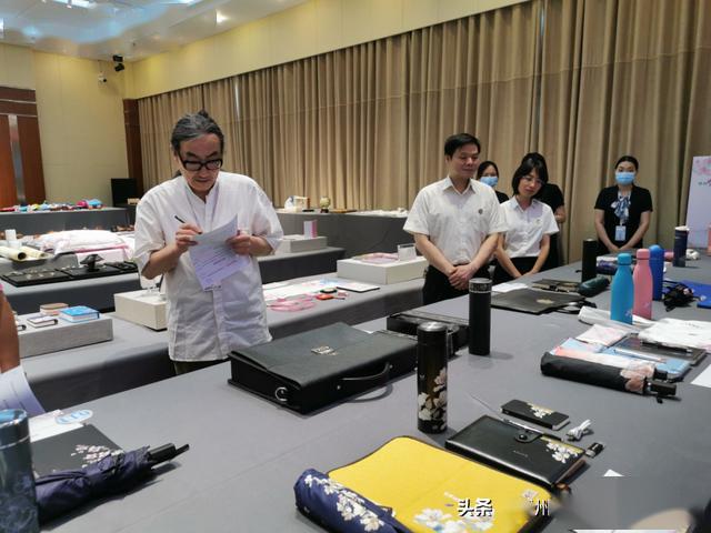 ↑ 專家評委組對柳州紫荊花商務(wù)套裝類文創(chuàng)作品進(jìn)行現(xiàn)場評比、打分。