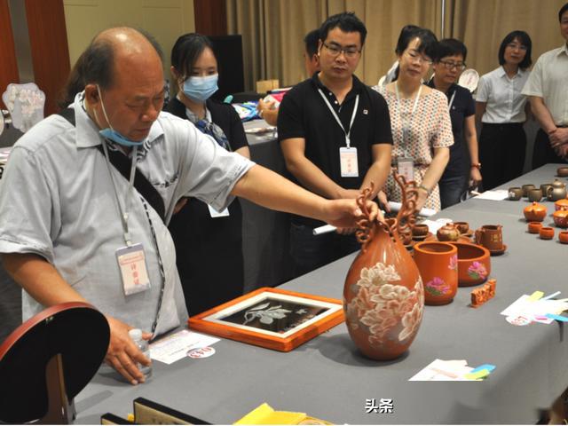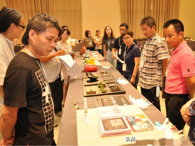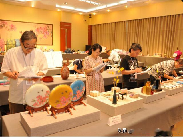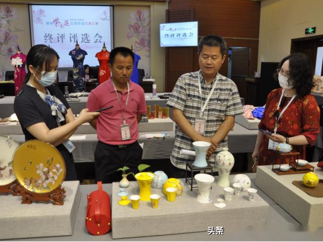 ↑ 專家評委組對柳州紫荊花藝術(shù)生活類文創(chuàng)作品進(jìn)行現(xiàn)場評比、打分。