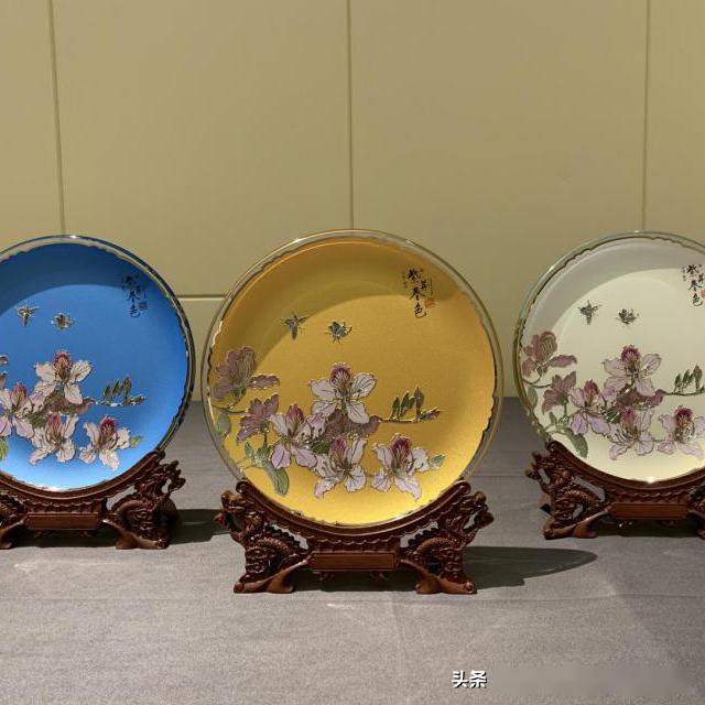 易建為——《紫荊春色掐絲琺瑯琉璃盤》