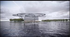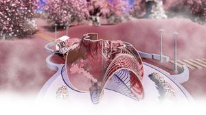 【設(shè)計(jì)思路】作品以芙蓉花待放的場(chǎng)景——“圓花一蒂卷,交葉半心開(kāi)”為設(shè)計(jì)基礎(chǔ),花葉狀的線條設(shè)計(jì)在部署上的層次錯(cuò)落,與周邊自然生態(tài)相呼應(yīng)?;ò?duì)畹木€條流暢而充滿靈動(dòng)感,半包圍的圓形布局凸顯了芙蓉含苞待放般的動(dòng)態(tài)之美,花瓣上交錯(cuò)鏤空的設(shè)計(jì)使得陽(yáng)光灑下時(shí),園內(nèi)會(huì)形成如樹(shù)蔭般的斑駁投影,觀賞者置身其中時(shí)直感惠風(fēng)和暢,心曠神怡,同時(shí)視覺(jué)上給予觀賞者建筑與生機(jī)勃勃的自然相互呼應(yīng)及完整融合,體現(xiàn)了中國(guó)自古以來(lái)將人--建筑--自然三合一的建筑理念。