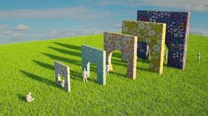 【設(shè)計(jì)思路】設(shè)計(jì)的是公園內(nèi)部的門,設(shè)計(jì)思路是借鑒了《克里斯托門》而進(jìn)行設(shè)計(jì)的。作品由五扇層層遞進(jìn)的門建造而成,門中內(nèi)部結(jié)構(gòu)形態(tài)不一,每扇都有自己的特點(diǎn)。各扇門之間顏色、紋路、變化都 有所不同,風(fēng)格相近統(tǒng)一, 給人以親近之感。 這就是一件視覺(jué)作品,它是用來(lái)看的,你需要花時(shí)間去體驗(yàn)它。