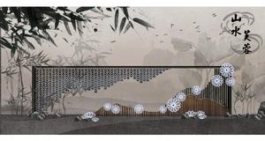 【設(shè)計(jì)思路】穿越時(shí)光的藩籬,靜默地踏上記憶之旅。歲月賦予我們的征兆以及感懷,被十指翻閱。薄暮 過(guò)后,側(cè)耳聆聽(tīng)您歸家的情愫。空間運(yùn)用大面積水墨畫,給人置身于此,可遠(yuǎn)觀,可近品,談笑 盈盈。希望觀看展品的每一位旅客,都能感受到中國(guó)文化的魅力。感受國(guó)畫帶來(lái)的水與墨的交融 酣暢淋漓的藝術(shù)效果