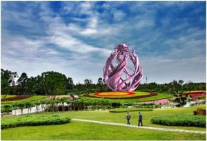 【設(shè)計(jì)思路】“三醉芙蓉”主體造型以抽象的芙蓉花瓣組成的藝術(shù)空間裝置,似熱烈綻放、花團(tuán)錦簇的花朵, 似揚(yáng)帆破浪前行,寓意著朝氣蓬勃和活力,象征天府芙蓉園所在的武侯區(qū)在發(fā)展中突破常規(guī)、 充滿高質(zhì)量發(fā)展的行動(dòng)力,擁有加速崛起的美好未來(lái)。