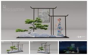 【設(shè)計(jì)思路】中式禪意一直是近年來(lái)的熱門風(fēng)格,這個(gè)場(chǎng)景把武侯祠的建筑造型簡(jiǎn)化之后展現(xiàn)出來(lái),沒(méi)有多余復(fù) 雜的贅述,一切造型與自然親近及契合。” 橫看成嶺側(cè)成峰,遠(yuǎn)近高低各不同”,使每位觀眾心境所不同 所見(jiàn)之雅,亦是干般不同。人們?cè)谄届o頓悟之中,體悟質(zhì)樸素雅之美。不僅將武侯祠代入欣賞列目,還 將禪意代入腦海,整個(gè)空間設(shè)計(jì)中,自然原木,白色原石,成為了視覺(jué)上的平衡點(diǎn),在燈光的映襯之下, 似乎所有的禪意都變得慵懶而溫暖。