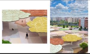 【設(shè)計(jì)思路】夏季,一個(gè)人令人懼怕外出的季節(jié),空氣中的高溫和無(wú)處不在的紫外線令人窒息,喜愛(ài)戶外的人們也變得足不出戶 但是在這樣的夏天,美觀且兼具實(shí)用功能的遮陽(yáng)棚的出現(xiàn),便讓人們?cè)谙募就瑯訒承袩o(wú)阻 以芙蓉花型為主體設(shè)計(jì),也意為給炎熱聒噪的夏日帶來(lái)一絲清涼感,游客們?cè)诿烙^的遮陽(yáng)棚下避陽(yáng)時(shí)可清晰看見(jiàn)投射在地面上一朵朵芙蓉花的造型景觀 可謂是圓花一蒂卷,交葉半心開(kāi)。影前半照耀,香里蝶徘徊。