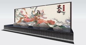 【設(shè)計(jì)思路】以卷軸的形式,修建一道景墻,將芙蓉文化和天府文化的特色元素作畫其上,在游客面前徐徐展開(kāi)。
