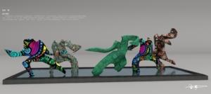 【設(shè)計(jì)思路】場(chǎng)景設(shè)置有五個(gè)形態(tài)各異的人體抽象造型,不同的裝飾帶來(lái)不一樣的感官效果,靈感來(lái)源于古代三國(guó)時(shí)期的蜀漢服飾和蜀錦元素, 將何人紅“妝”為"她”舞,寓意巧妙的蘊(yùn)含到人物造型里,在夜間 ,人物底部燈光照射出來(lái),場(chǎng)景柔亮的燈光效果將小人兒活靈活現(xiàn)地展示出來(lái),舞姿曼妙,有舞,也有武,動(dòng)姿宜人,靜態(tài)與動(dòng)態(tài)元素遙相呼應(yīng),給每 一位觀眾以視覺(jué)享受。