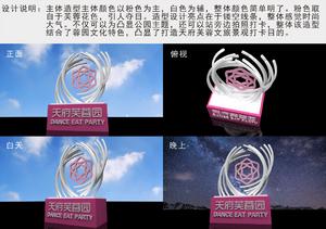 【設(shè)計(jì)思路】底座以芙蓉花為原型做出了層次感十足的造型,其中設(shè)置了水域、噴泉裝置和五彩射燈,上部空間用是一一個(gè) 毛筆的形狀,上面按間隙安置燈光,就像是花蕊伸了出來(lái)。