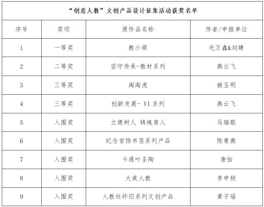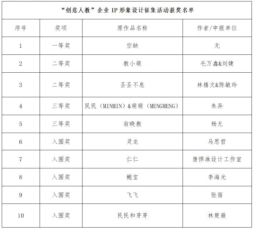 “創(chuàng)意人教” 企業(yè)IP形象設(shè)計(jì)、文創(chuàng)產(chǎn)品設(shè)計(jì)征集活動(dòng)獲獎(jiǎng)名單公布