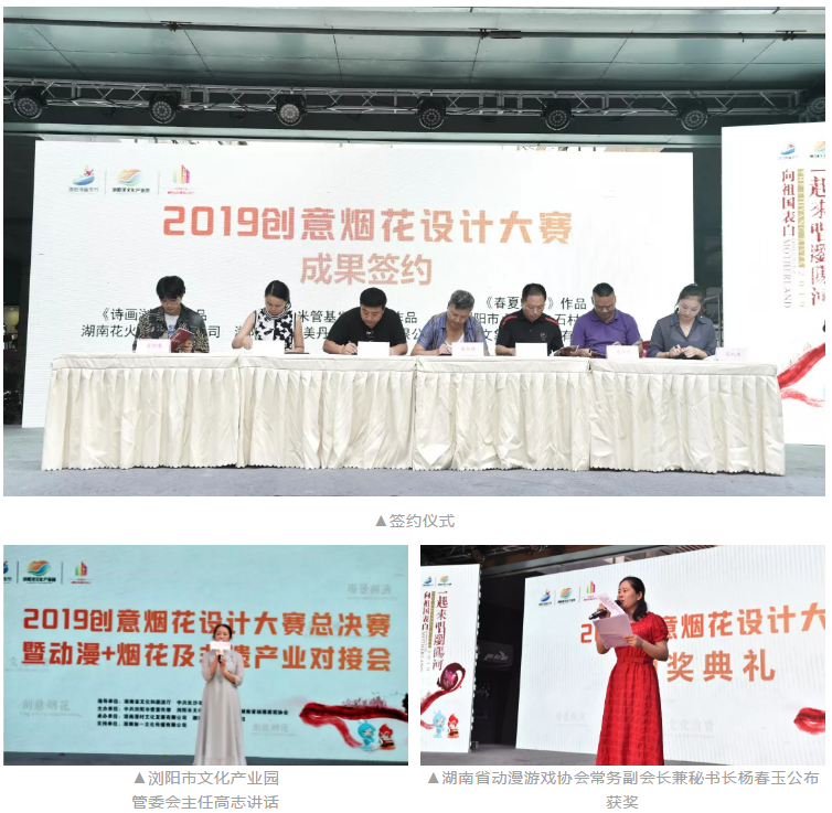 9月22日,由湖南省文化和旅游廳、中共長沙市委宣傳部指導(dǎo),中共瀏陽市委宣傳部、瀏陽市文化產(chǎn)業(yè)園管委會、湖南省動漫游戲協(xié)會主辦,湖南漫村文化發(fā)展有限公司、湖南花火劇團(tuán)有限公司承辦,創(chuàng)意煙花·美漫生活2019創(chuàng)意煙花設(shè)計大賽總決賽,來到世界煙花之鄉(xiāng)——瀏陽,在“智慧瀏陽河”文化創(chuàng)意孵化基地成功舉辦。大賽旨在推動我省及瀏陽文化產(chǎn)業(yè)創(chuàng)新升級,以新理念、新業(yè)態(tài)、新技術(shù)推動湖湘優(yōu)秀傳統(tǒng)文化創(chuàng)造性轉(zhuǎn)化、創(chuàng)新性發(fā)展,吸聚和培養(yǎng)創(chuàng)意煙花新人才,實現(xiàn)創(chuàng)意成果轉(zhuǎn)化,資源對接,促進(jìn)煙花產(chǎn)業(yè)與動漫等現(xiàn)代文化產(chǎn)業(yè)跨界融合,高質(zhì)量發(fā)展。