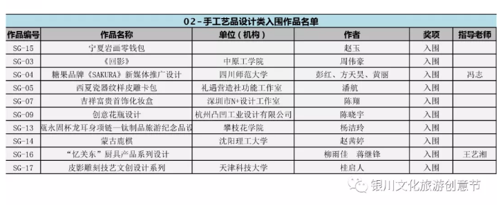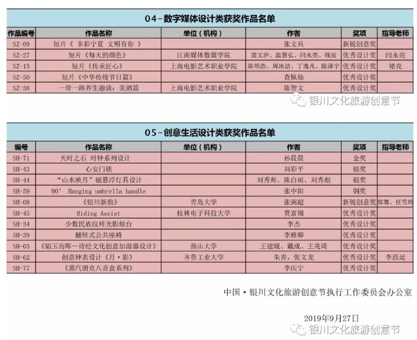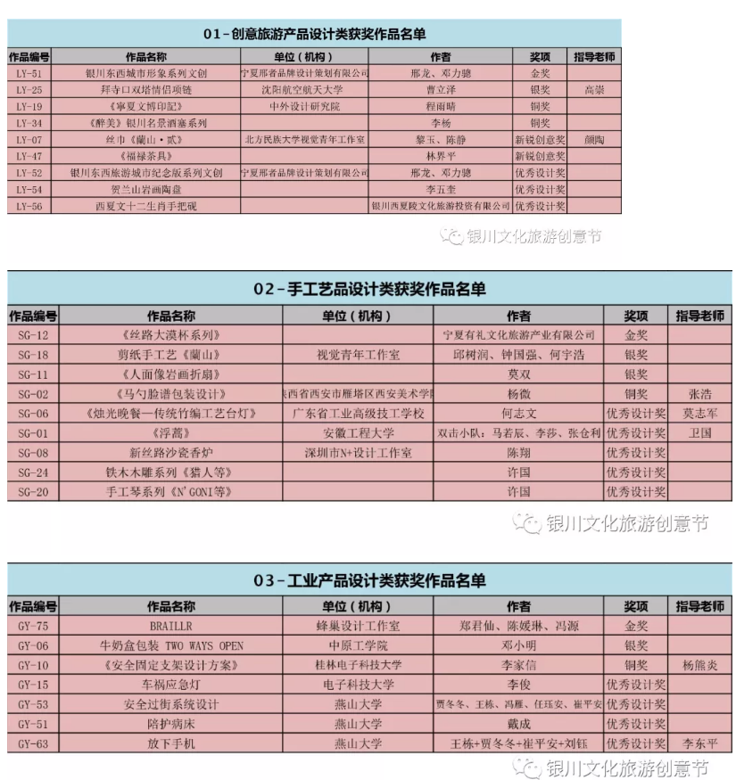 各位參加本次2019年第三屆中國·銀川文化旅游創(chuàng)意產(chǎn)品設(shè)計大賽的寶寶們,你們期待的獲獎名單終于在今日公布啦!快來看看下面的榜單上有沒有你們的作品呢?